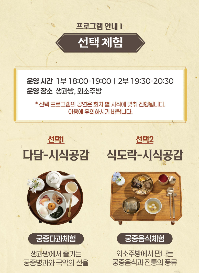 • 가능하면 식도락/다담 중 원하는 프로그램을 사전에 정해두세요.