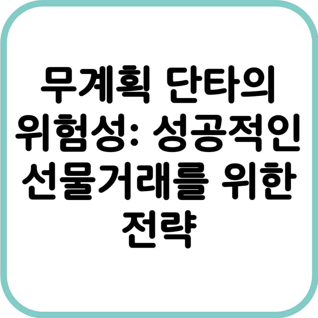 선물거래는 높은 수익을 추구할 수 있는 매력적인 투자 방식이지만, 그만큼 큰 리스크도 동반합니다.