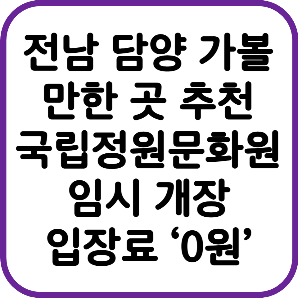 🔸 담양 연계 관광지 탐방: 죽녹원, 소쇄원, 메타세쿼이아길 등과 연계한 1박 2일 코스도 고려해 보세요.