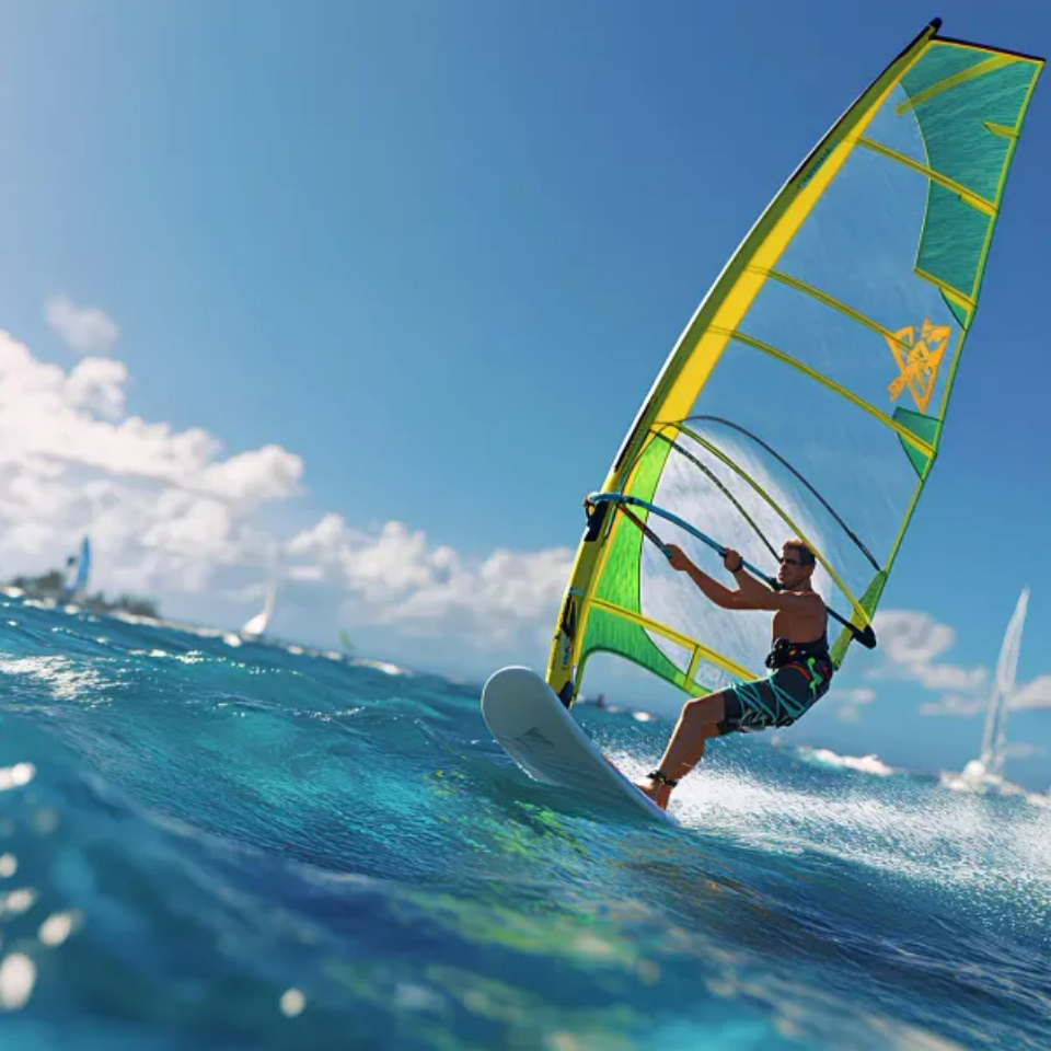 - 윈드서핑은 바람을 잡아 속도를 내며 바다 위를 질주하는 다이내믹한 종목입니다.