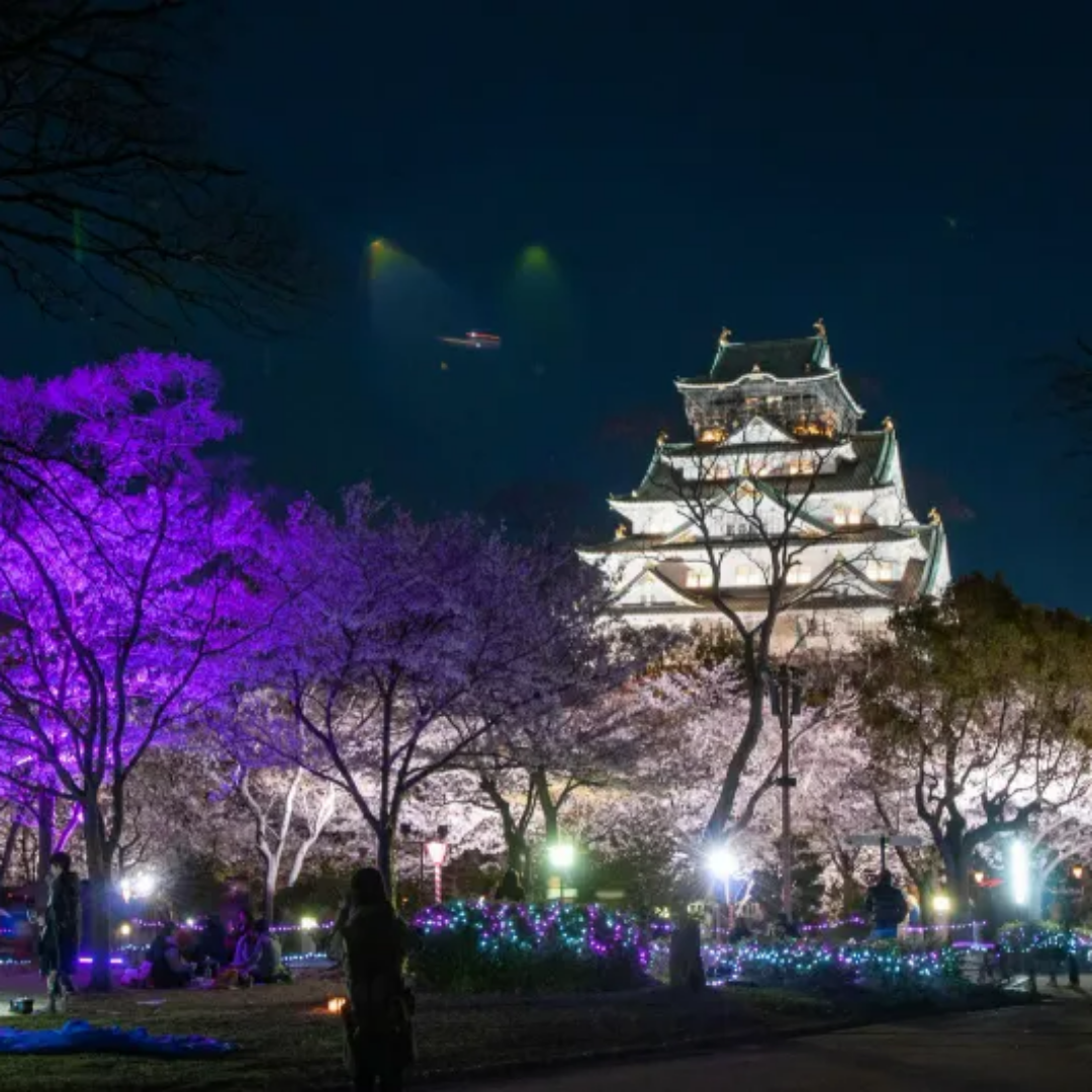 야간 벚꽃 감상: 오사카성 공원 등 일부 명소에서는 라이트업이 진행되므로 밤에도 꼭 방문해 보세요!
