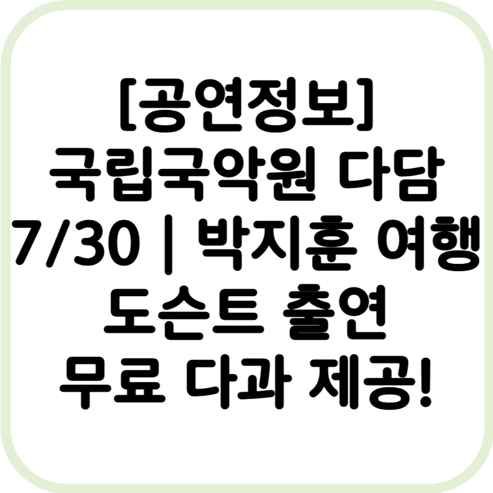 🎶 국립국악원 ‘다담’ 7월 공연|국악·차·이야기로 채우는 브런치 힐링 (7/30)