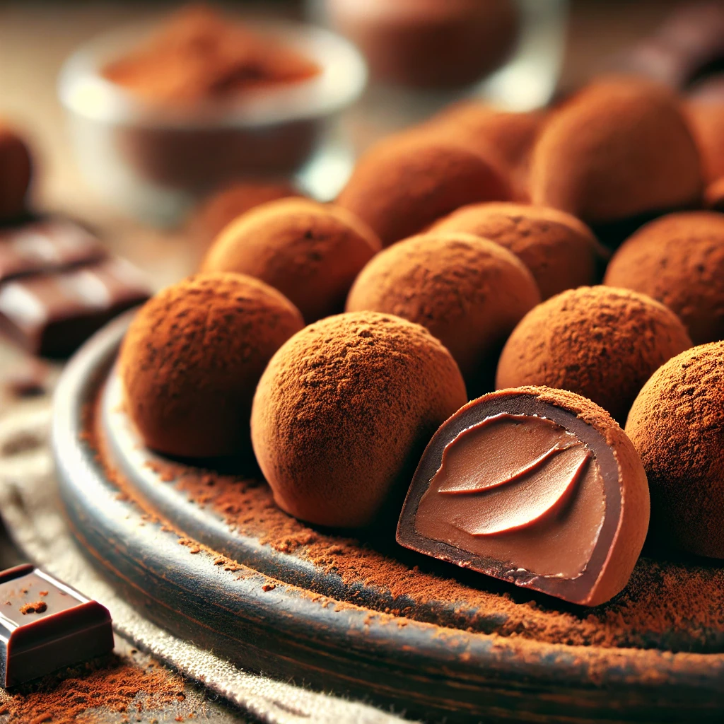 · 재료: 다크 초콜릿 200g, 생크림 100ml, 코코아 파우더